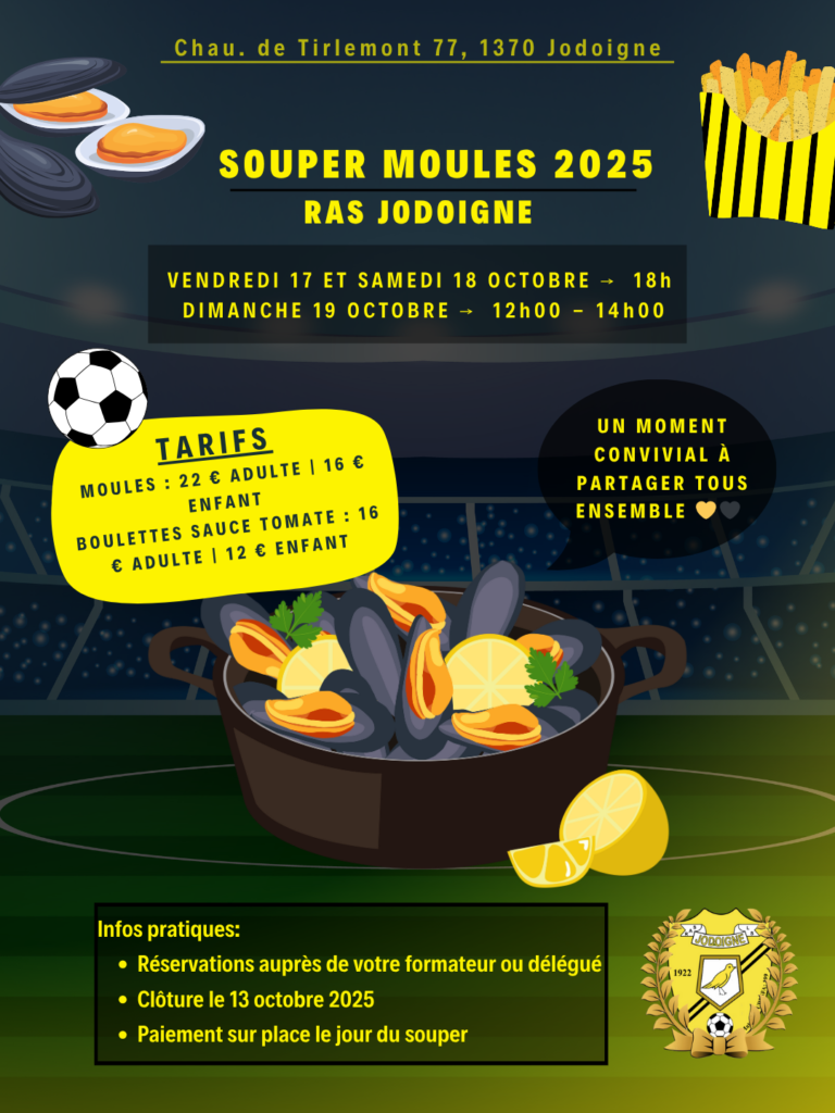 17Oct Souper annuel Moules RASJ WE du 17/18/19 octobre
